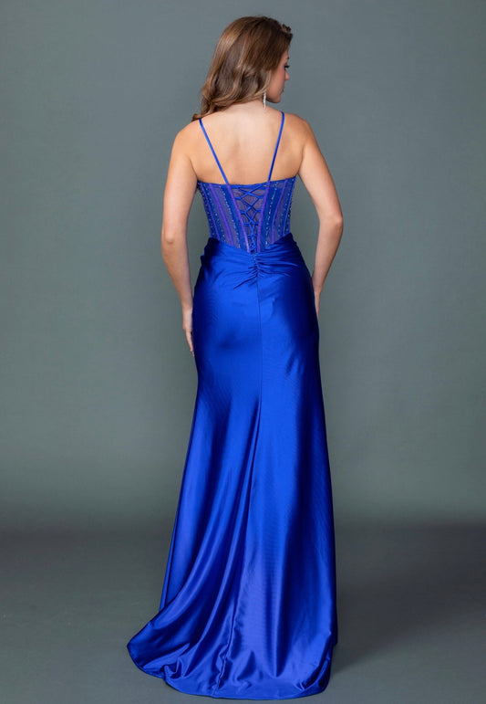 Beaded Mesh Strapless Slit Gown by Ladivine CD388
